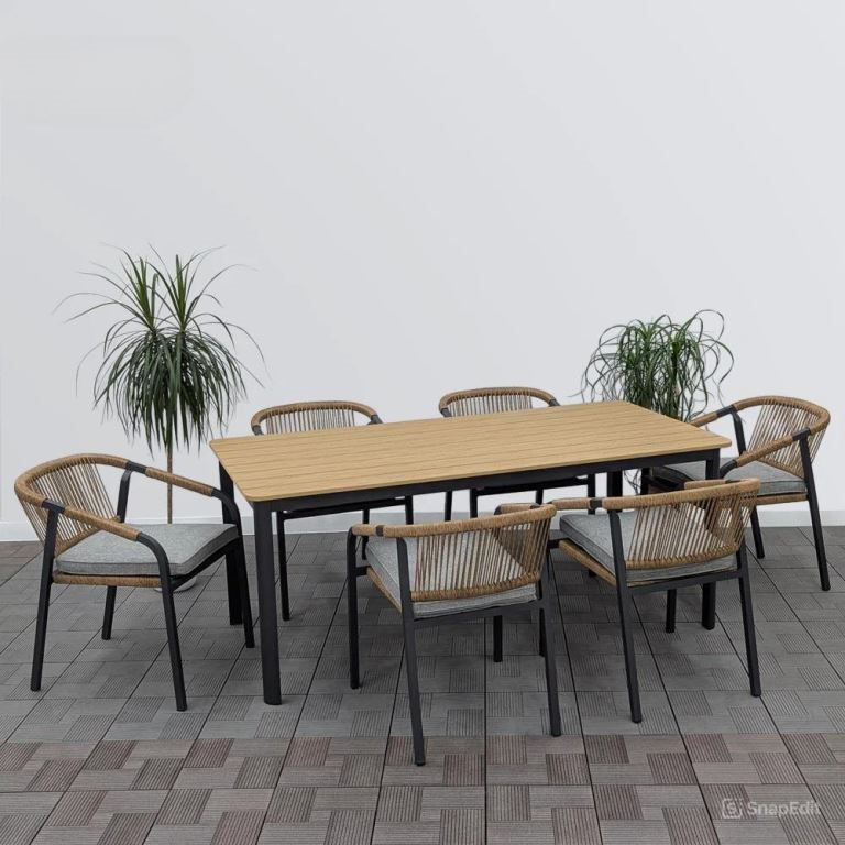 В комплект входят обеденный стол и шесть кресел, что позволяет удобно разместить большую семью или компанию друзей. Стол, выполненный из качественных материалов, не только прочен, но и легко вписывается в любые интерьерные стили, от минимализма до скандинавского дизайна. Кресла же, благодаря своей форме и мягким подушкам, обеспечивают комфорт во время долгих обедов или ужинов.