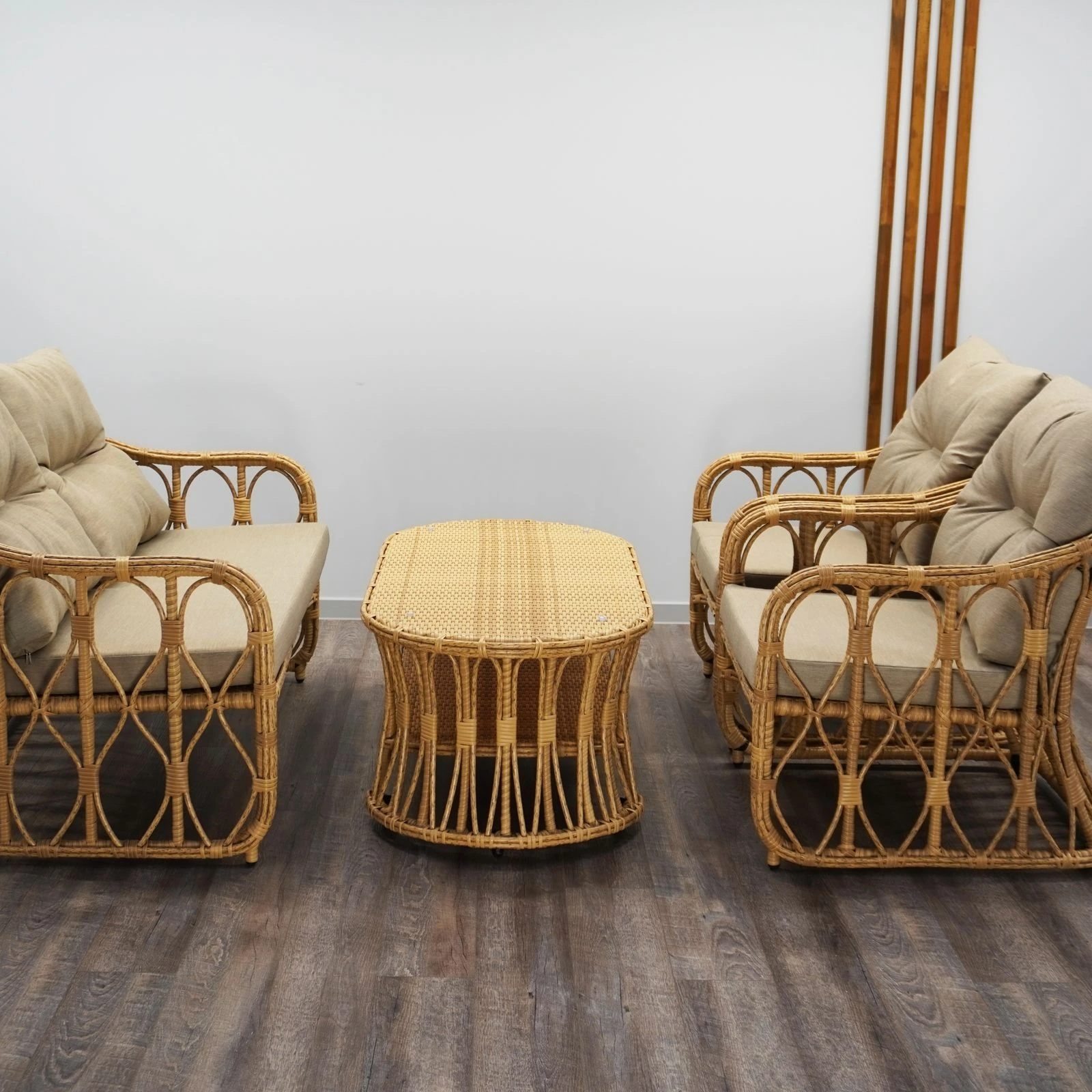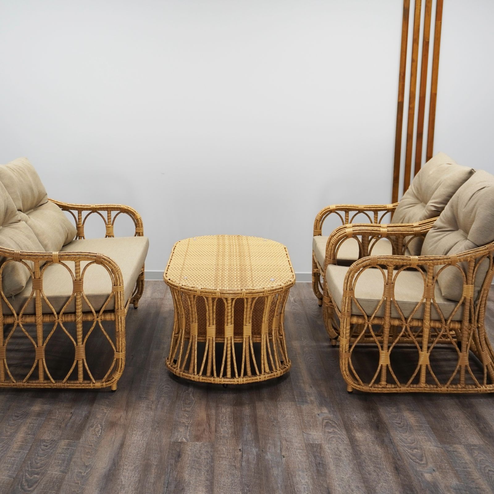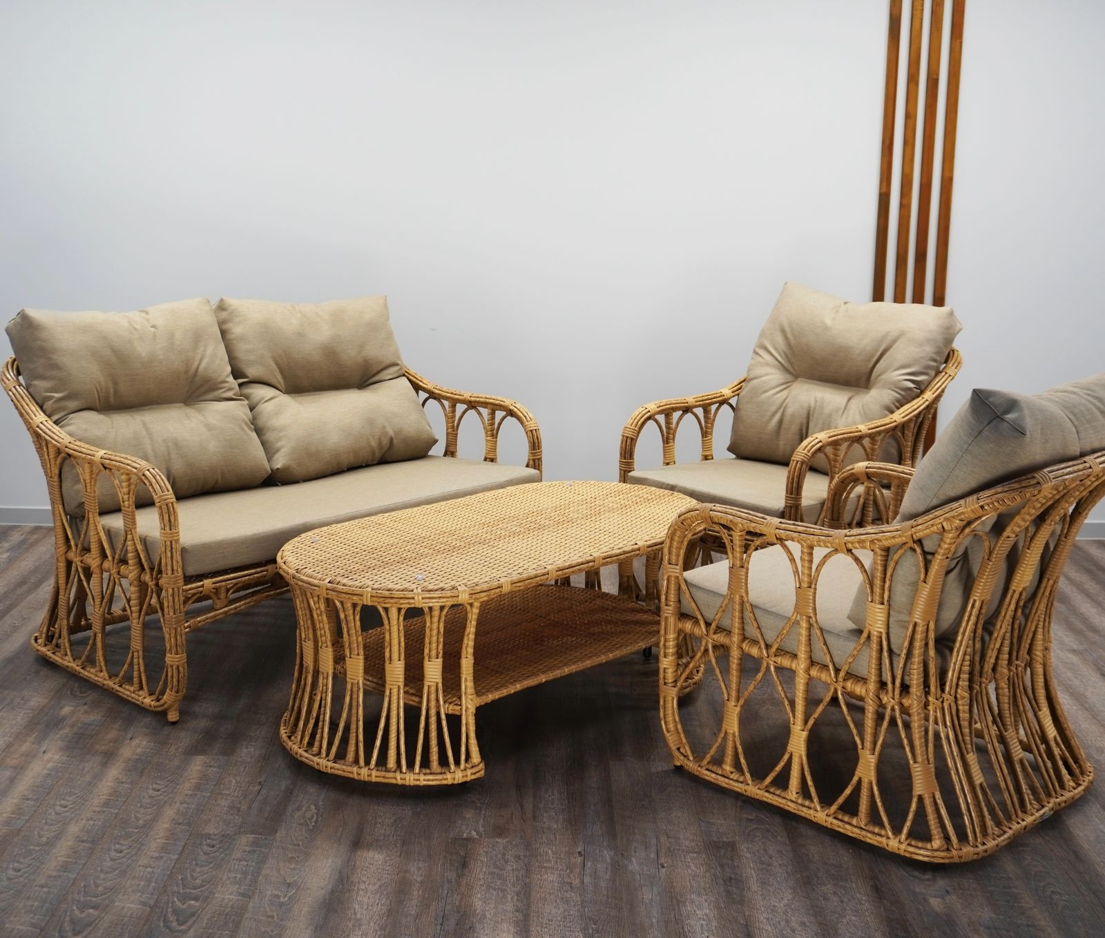 Комплект мебели из искусственного ротанга по индивидуальному заказу для использования на улице и дома.