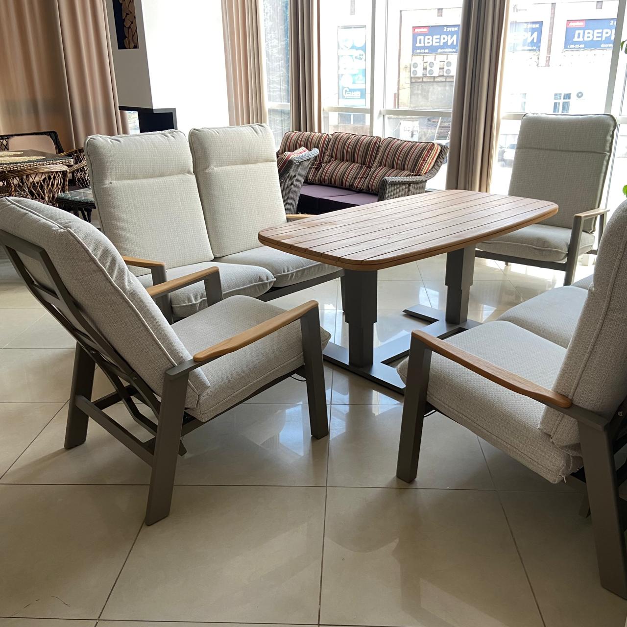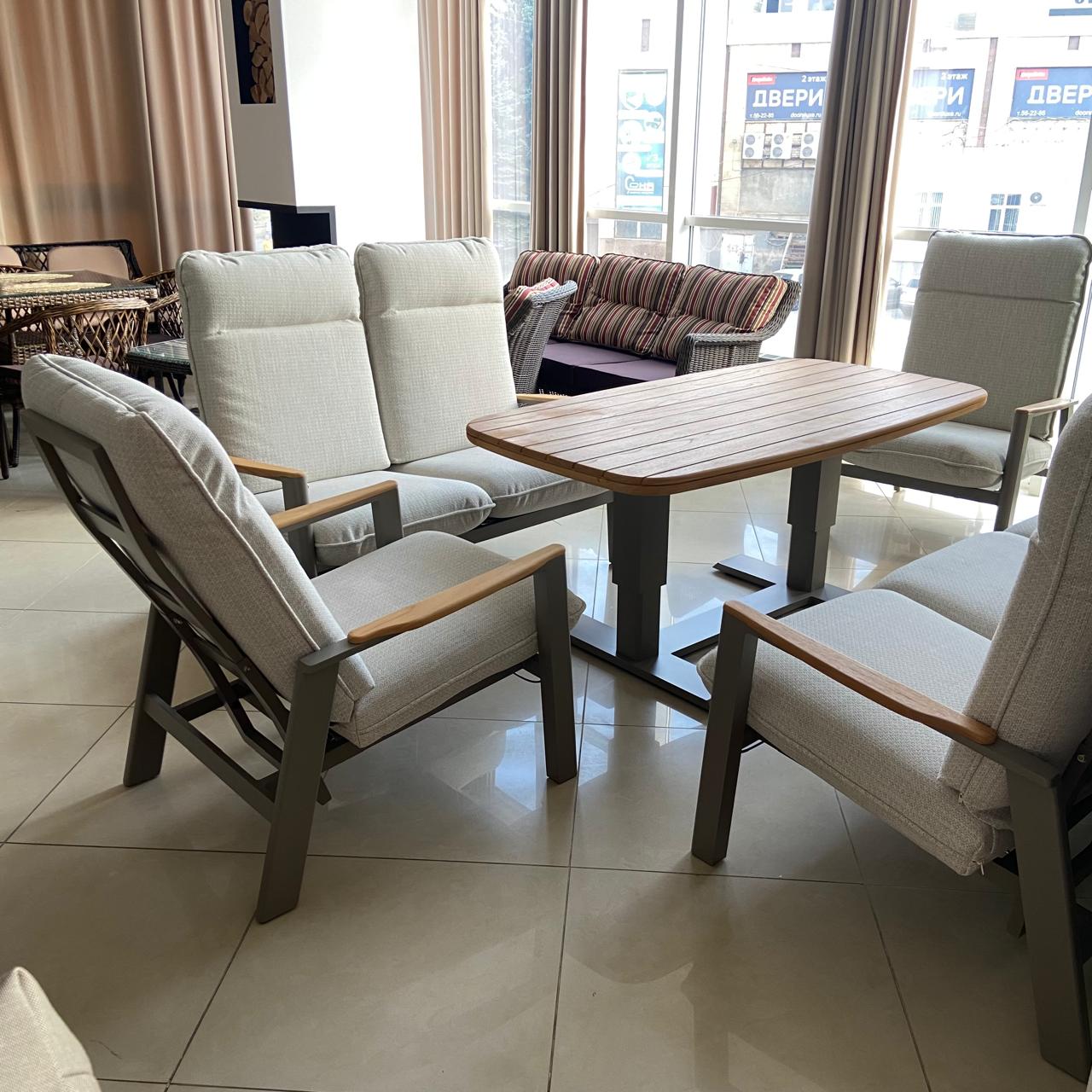 ( Диван 3х местный + Диван 2х местный + 2 Кресла + Стол (Дерево ТИК) меняется по высоте)