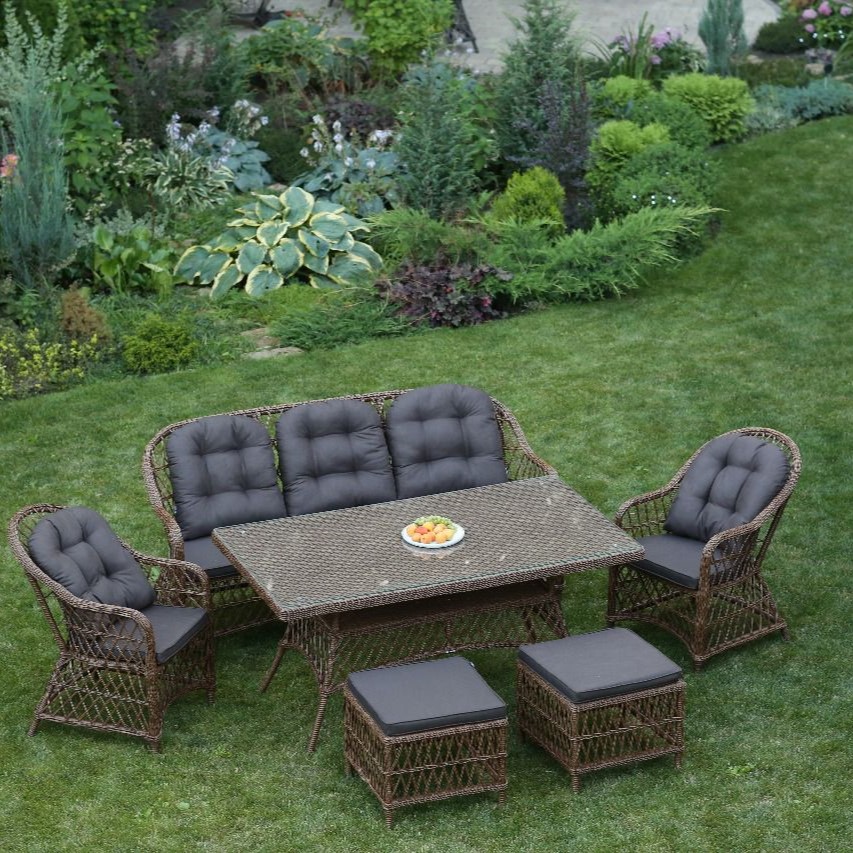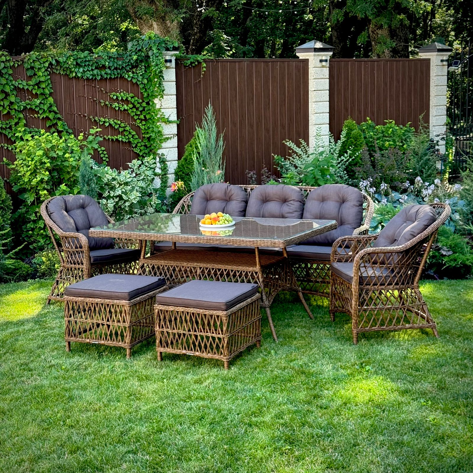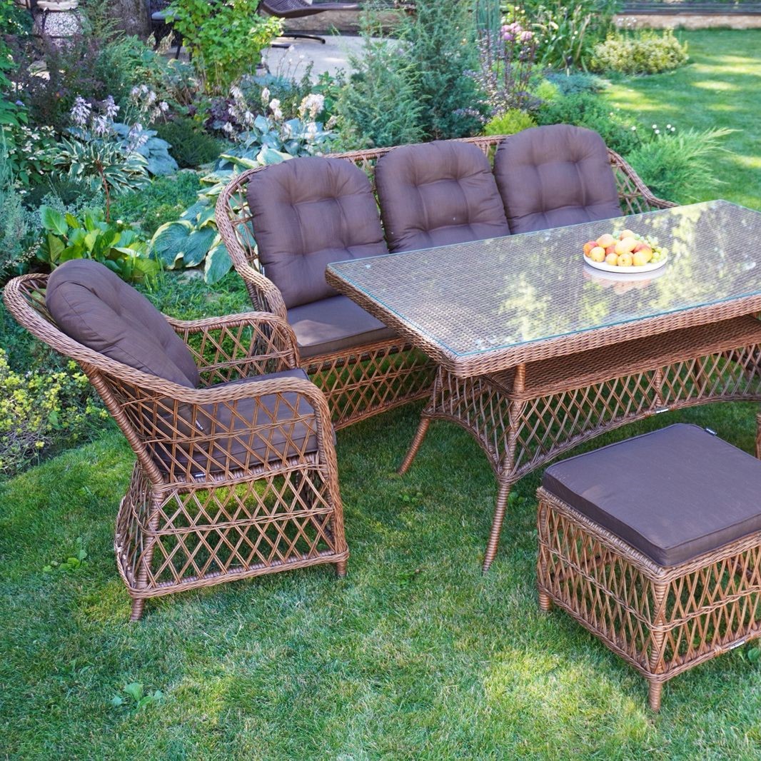 Комплект изготовлен вручную в полукруглом жгуте , кресла и софа идеально сочетаются как с плетёным столами, так и со столами из керамогранита или HPL, представленные в нашем шоуруме.