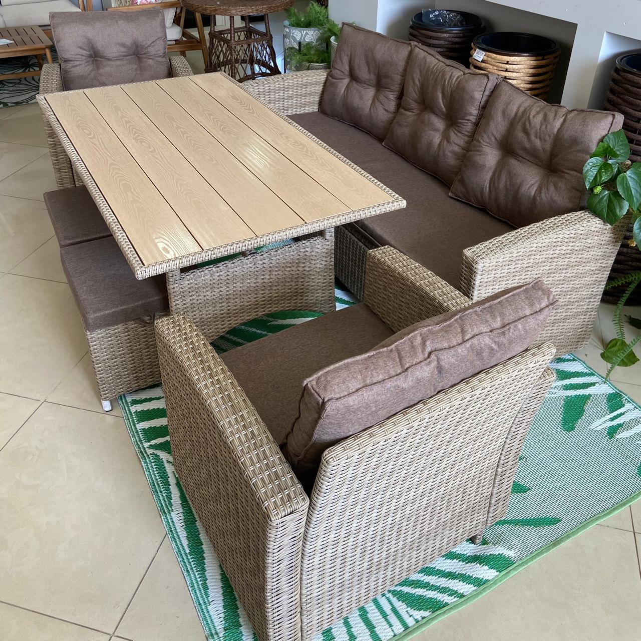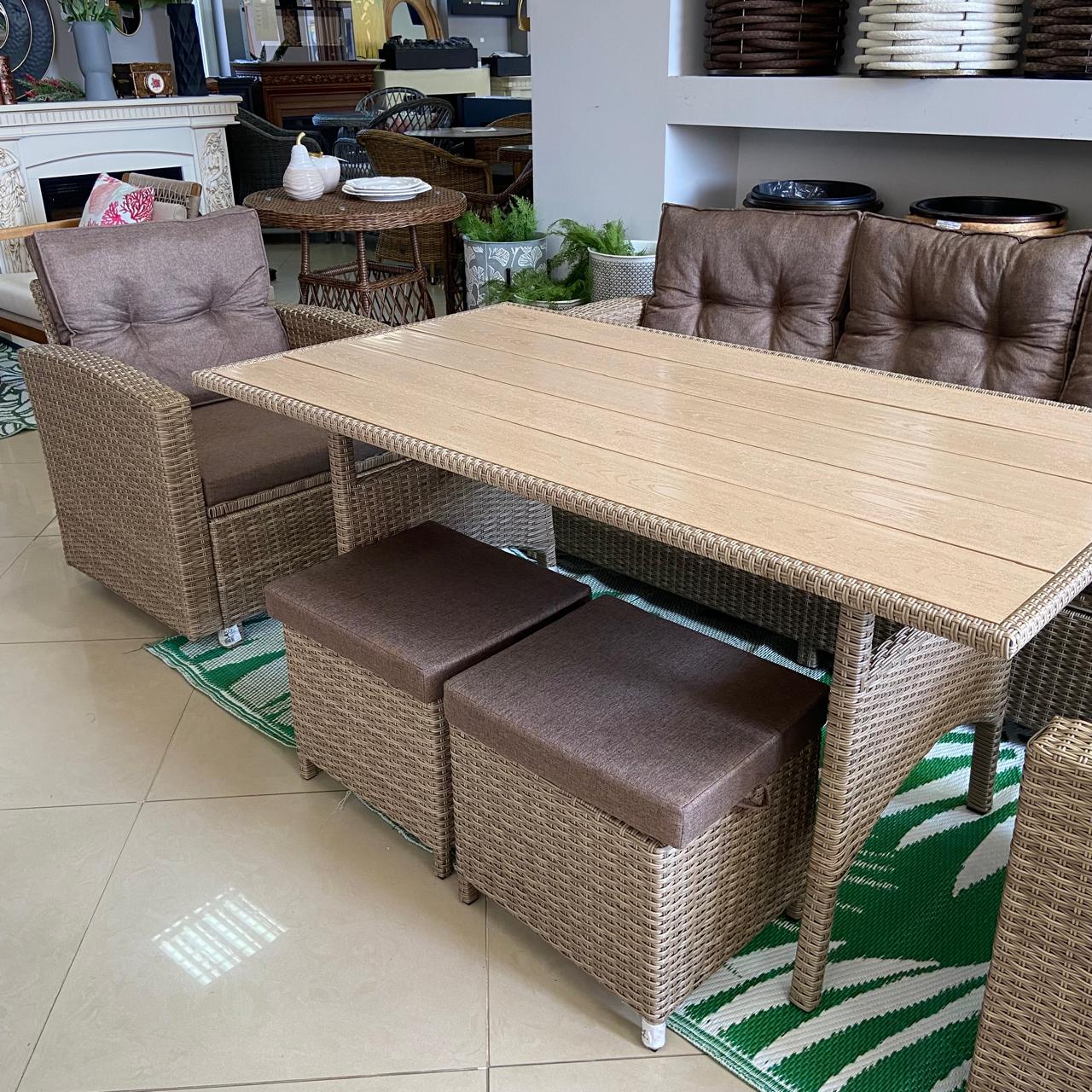 Идеально подходит для террас, беседок, веранд и дачных участков. В комплект входит все необходимое для отдыха компании до 8 человек: