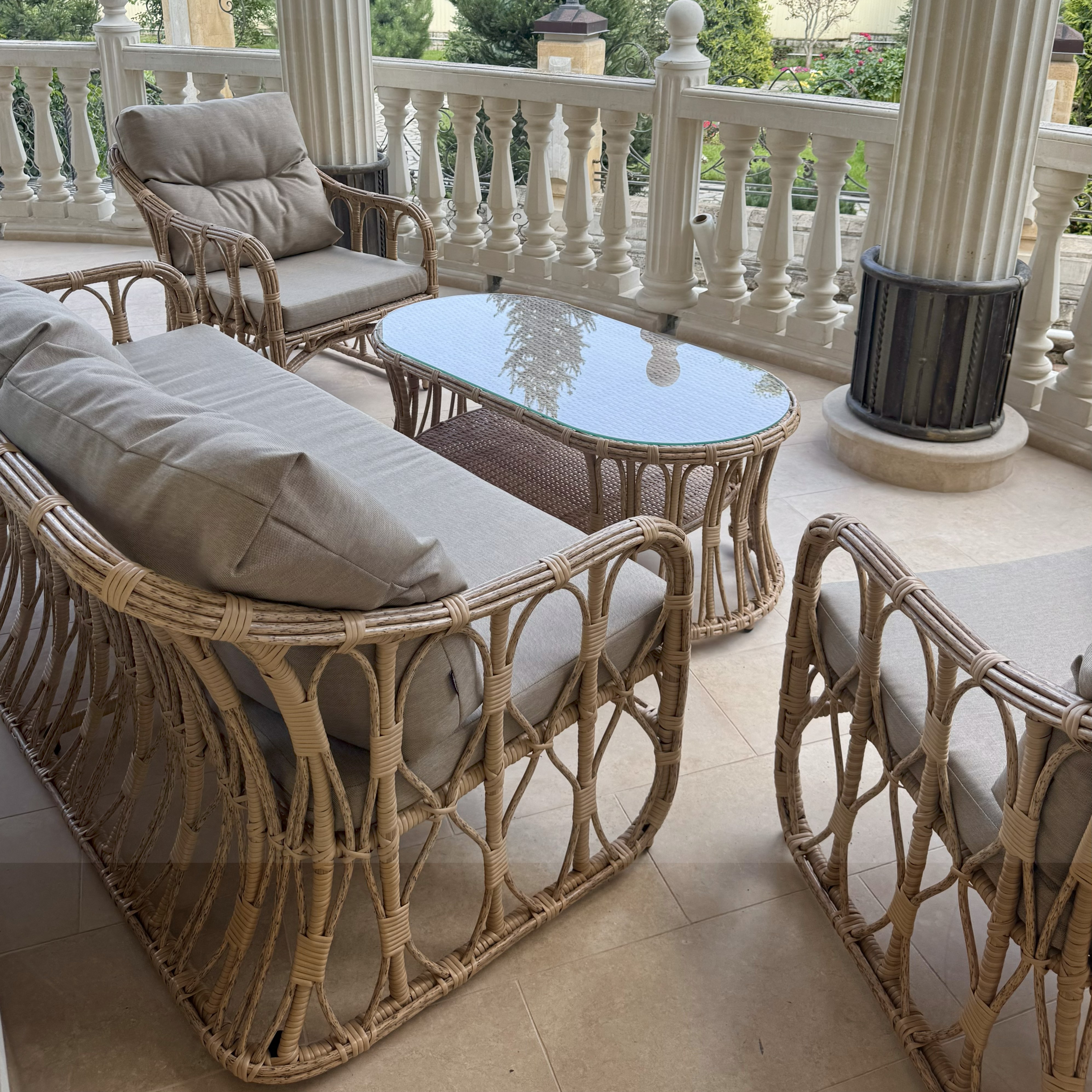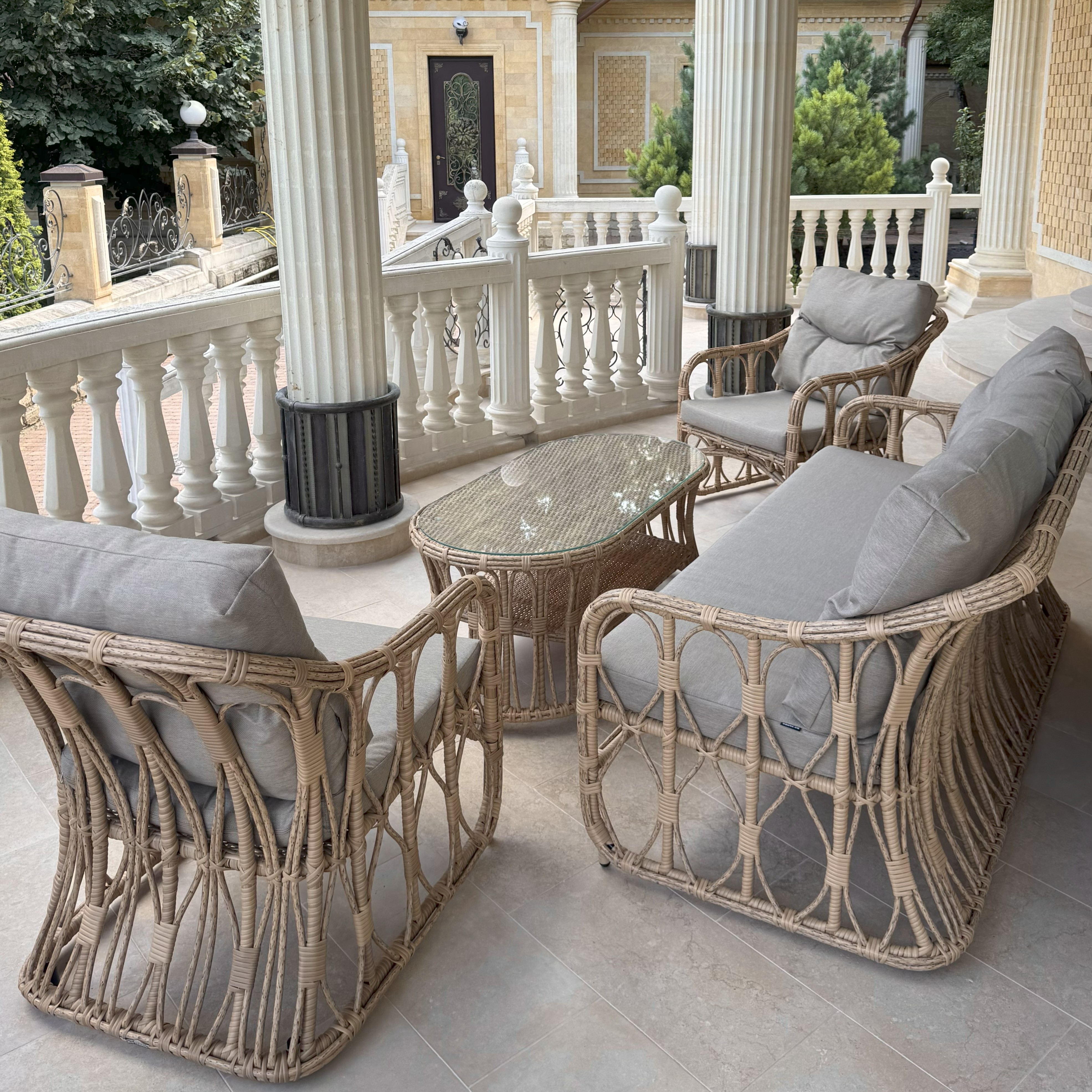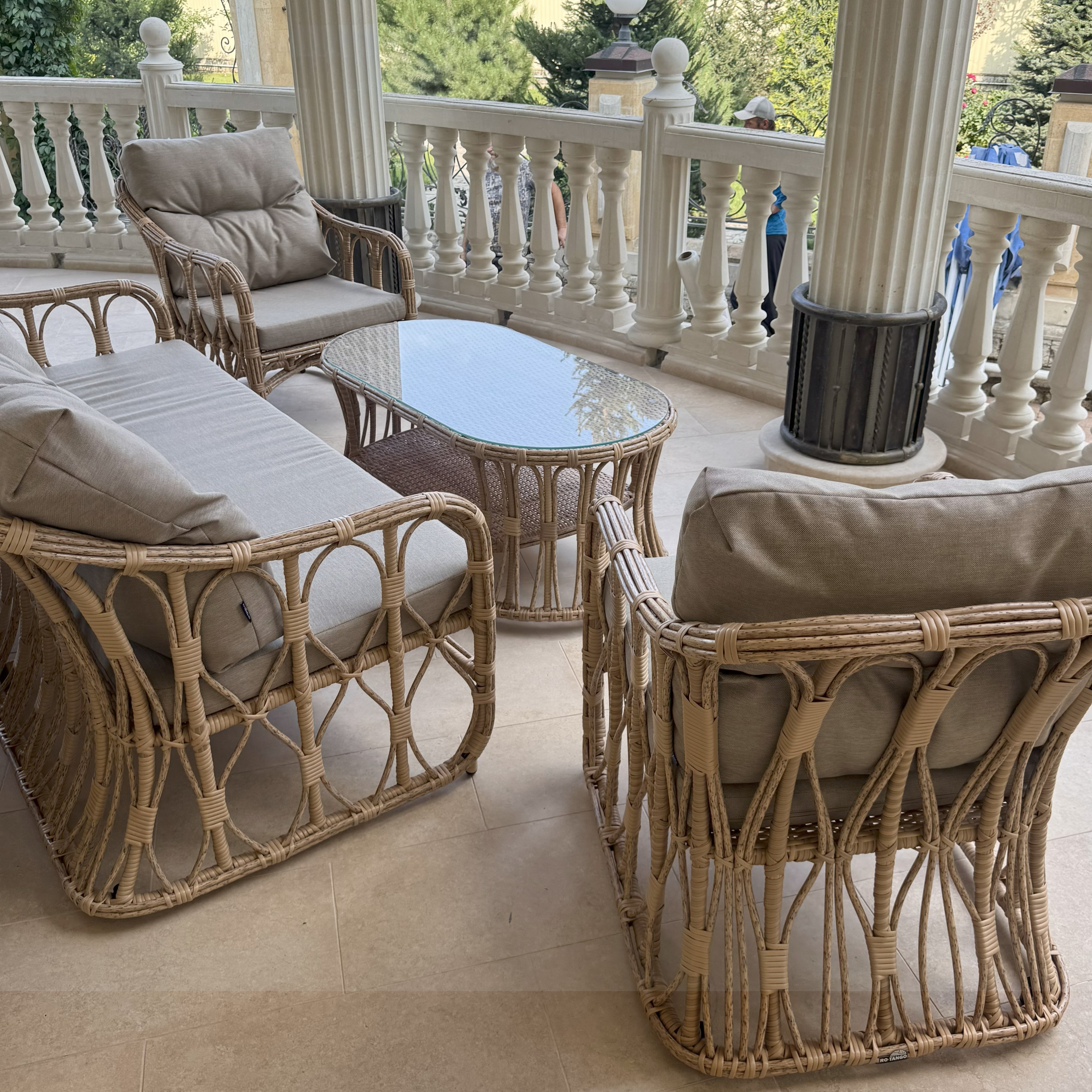 Комплект мебели из искусственного ротанга по индивидуальному заказу для использования на улице и дома.