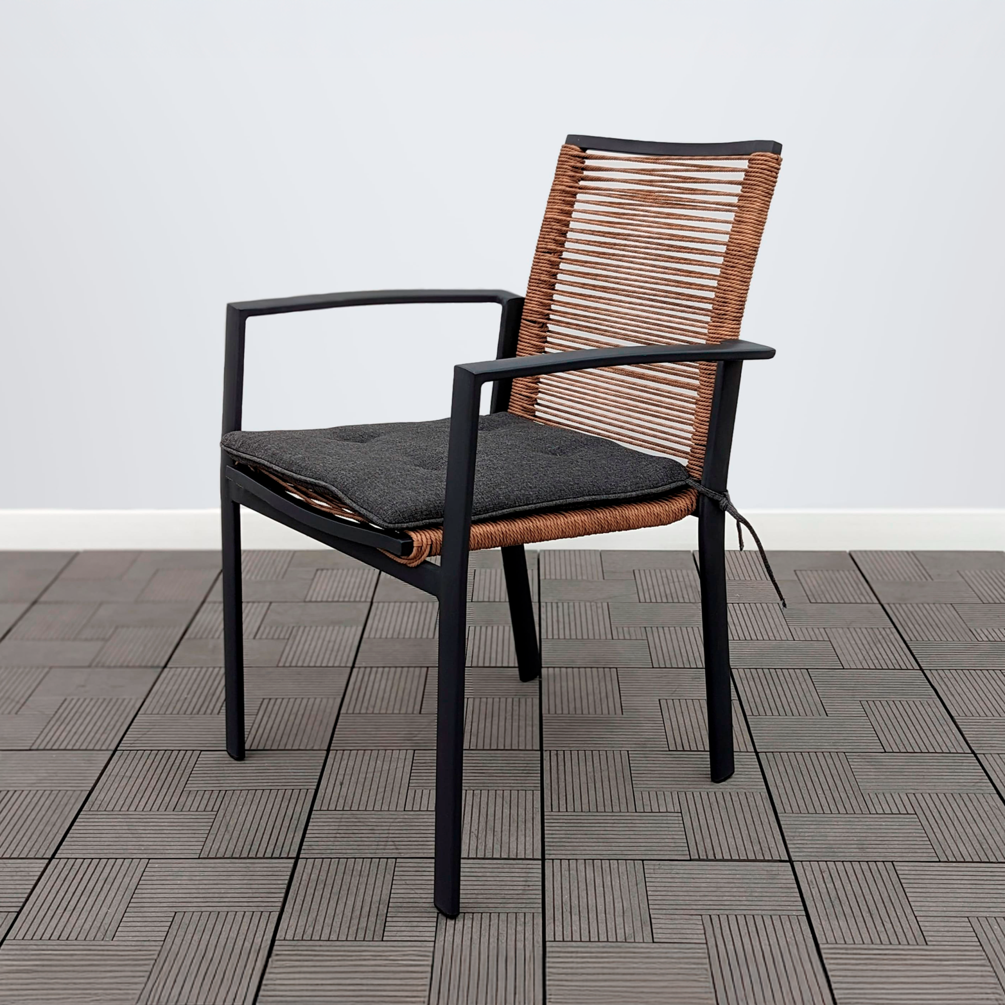 На сидение предусмотрена подушка из влагостойкой ткани.