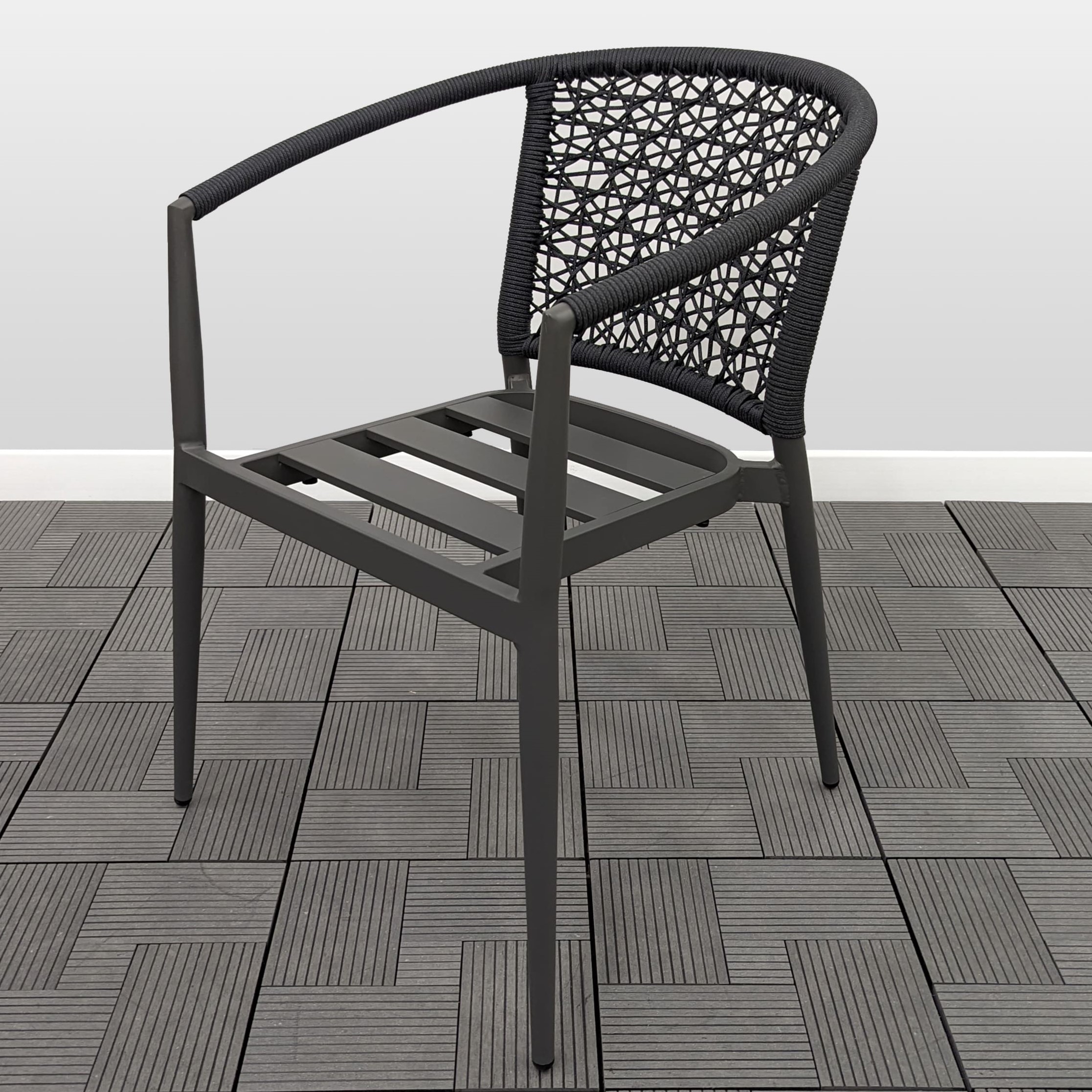 Кресла легко штабелируются и занимают минимум места. Удобный и пактичный вариант для летних кафе и террас.