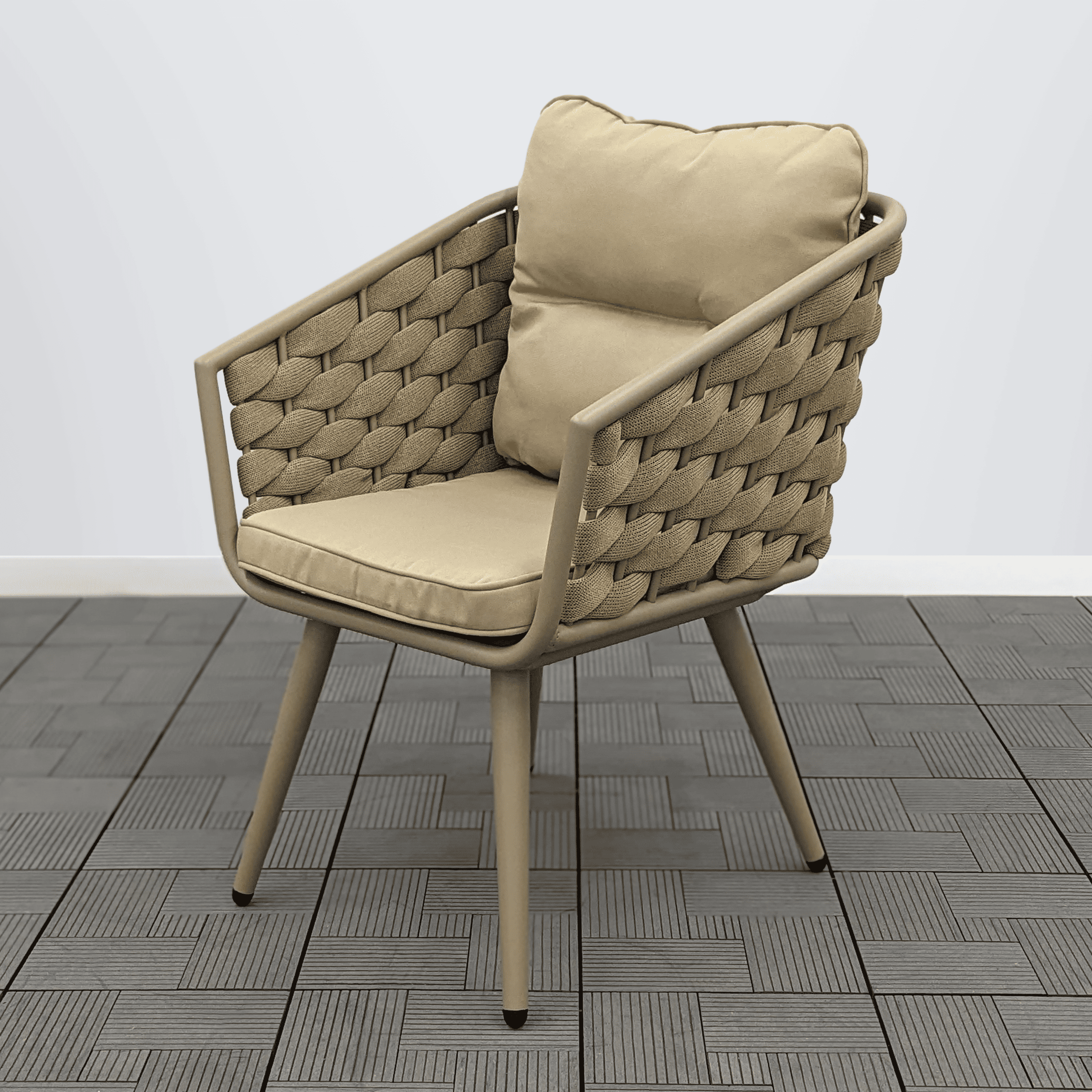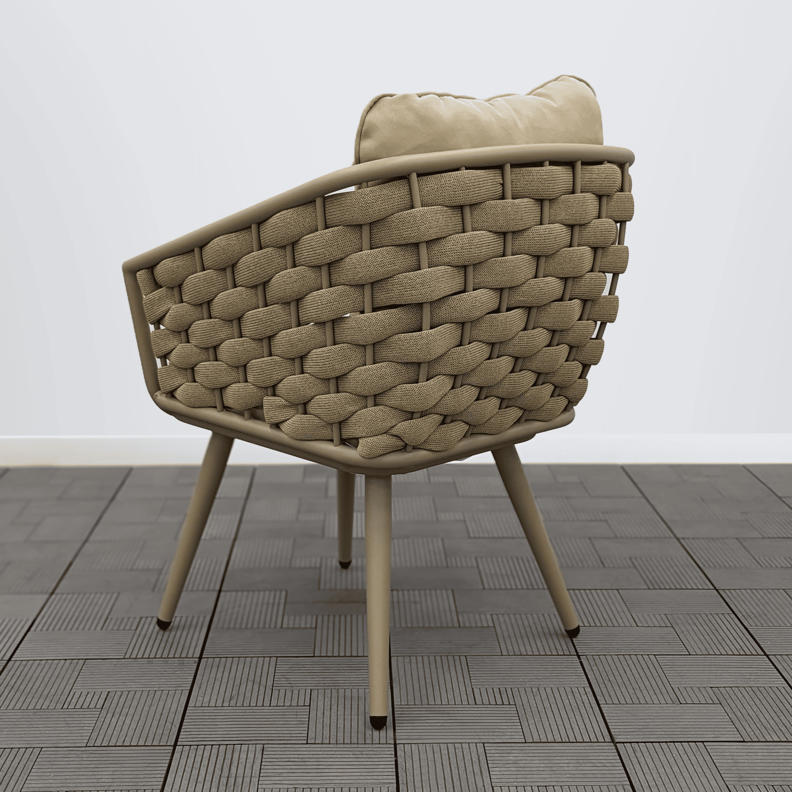 Выбор цвета каркаса и роупа остается за покупателем. Цвет подушек соответствует цвету роупа, и подушки идут в комплекте: под сидение и под спину. Подушки изготовлены из влагостойкой ткани, чехлы съемные.