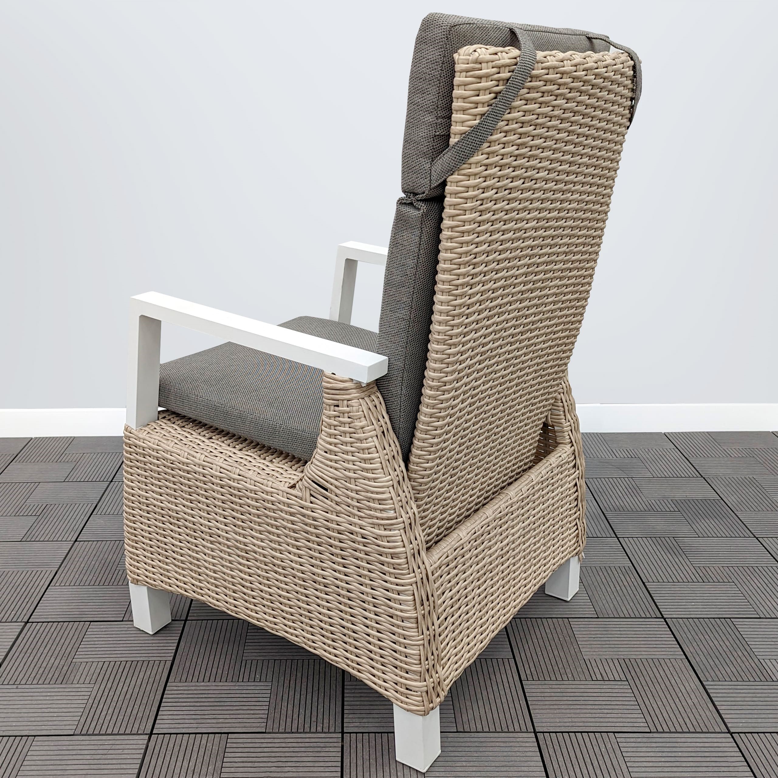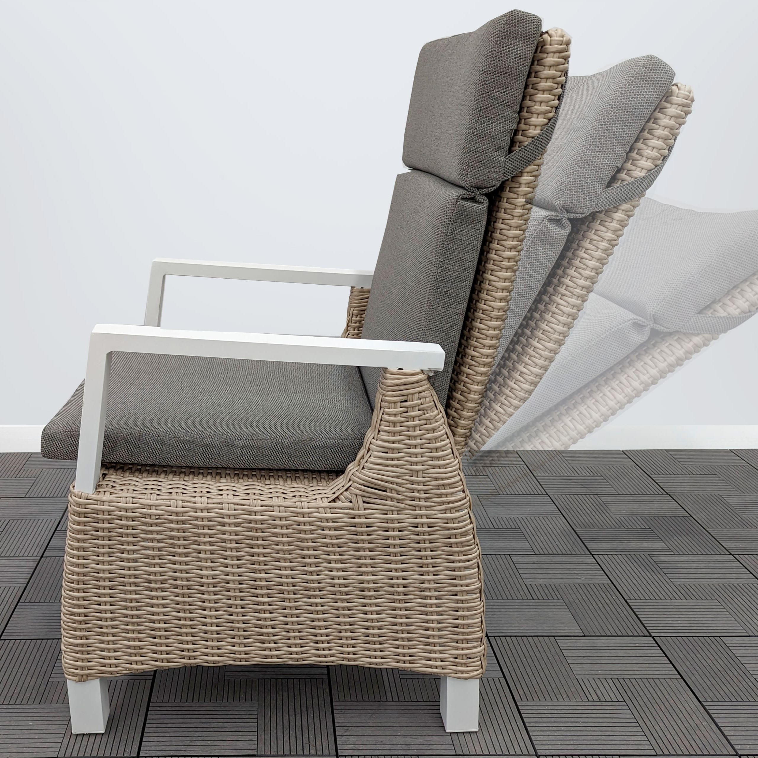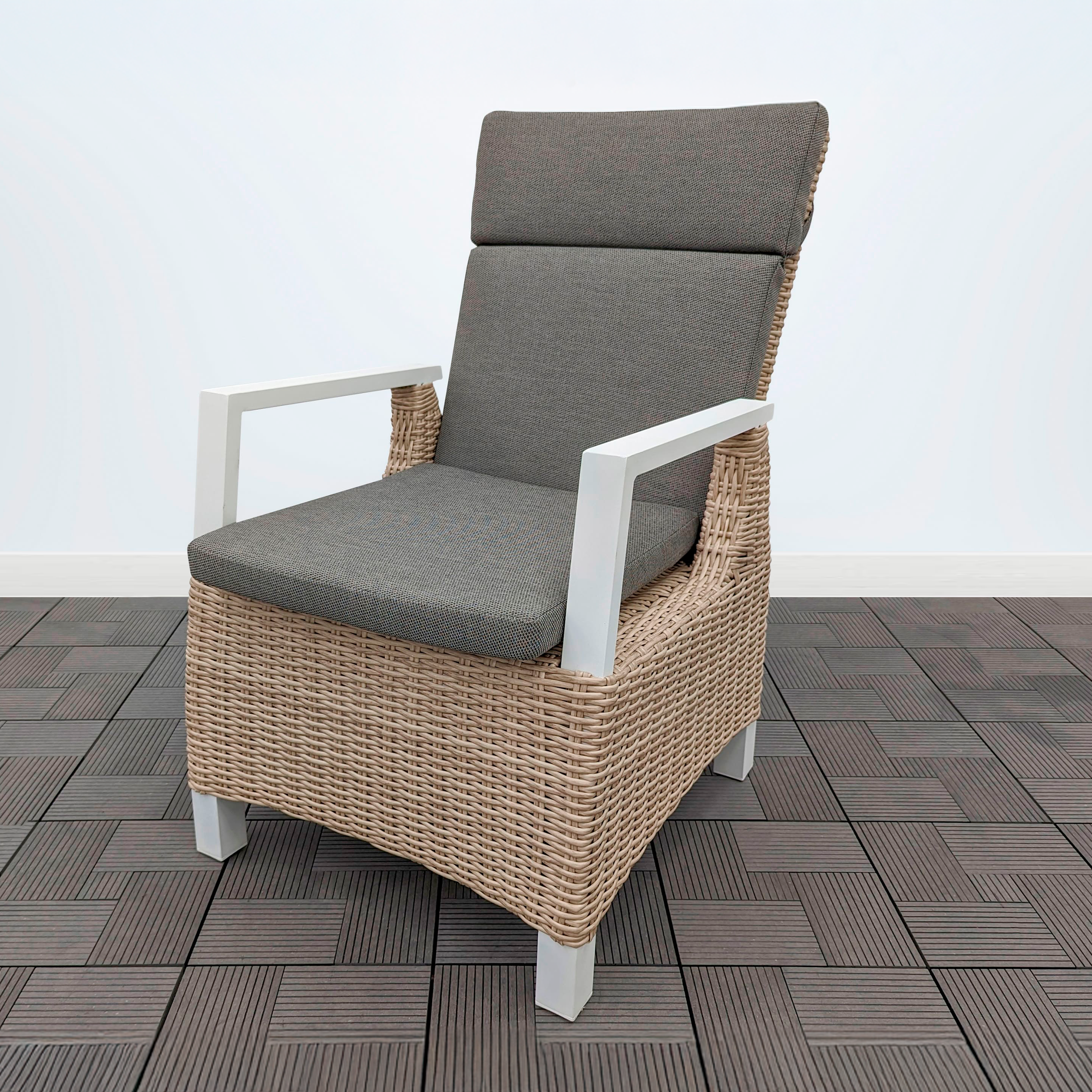 На подлокотнике с внутренней стороны расположена кнопка регулирования положения спинки.