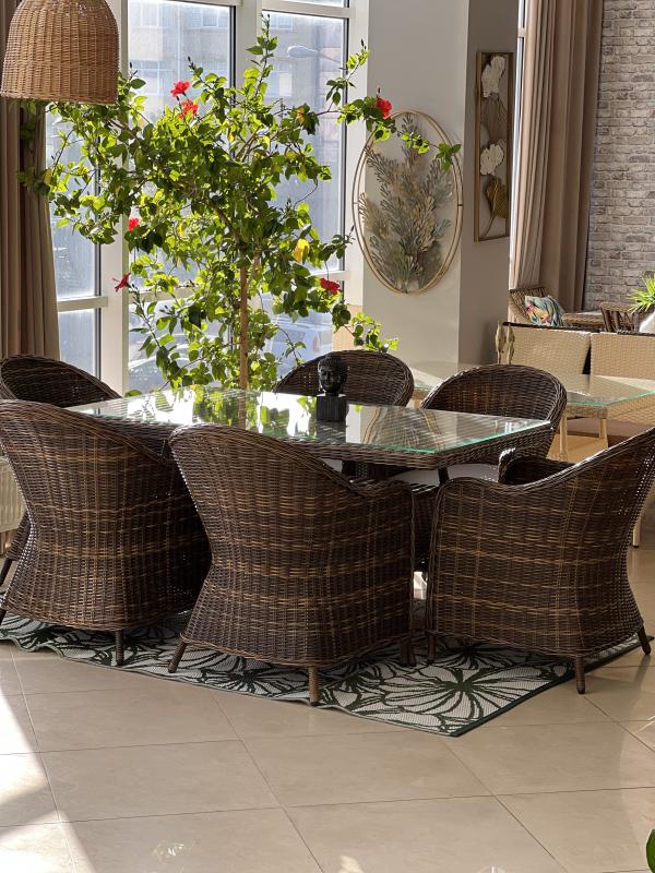 Мебель из искусственного ротанга представляет собой идеальное сочетание экологичности, прочности и устойчивости к различным воздействиям. При производстве данного материала используются экологичные полимеры, не выделяющие вредных веществ и неприятного запаха, даже при большом нагревании. Это отличает его от натурального ротанга. Кроме того, мебель из искусственного ротанга обладает усиленными алюминиевыми каркасами, придающими ей крепкость, надежность и способность выдерживать большой вес.