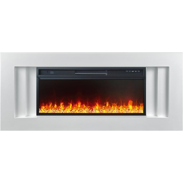 В качестве внутреннего декора используются стильные прозрачные кристаллы и разноцветная галька. Подсветку кристаллов и яркость пламени можно регулировать – доступно 4 возможных варианта. Модель дополнена звуковой имитацией потрескивания дров.