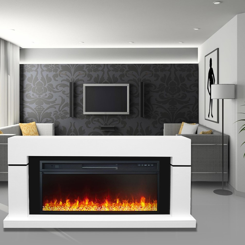 В качестве внутреннего декора используются стильные прозрачные кристаллы и разноцветная галька. Подсветку кристаллов и яркость пламени можно регулировать – доступно 4 возможных варианта. Модель дополнена звуковой имитацией потрескивания дров.