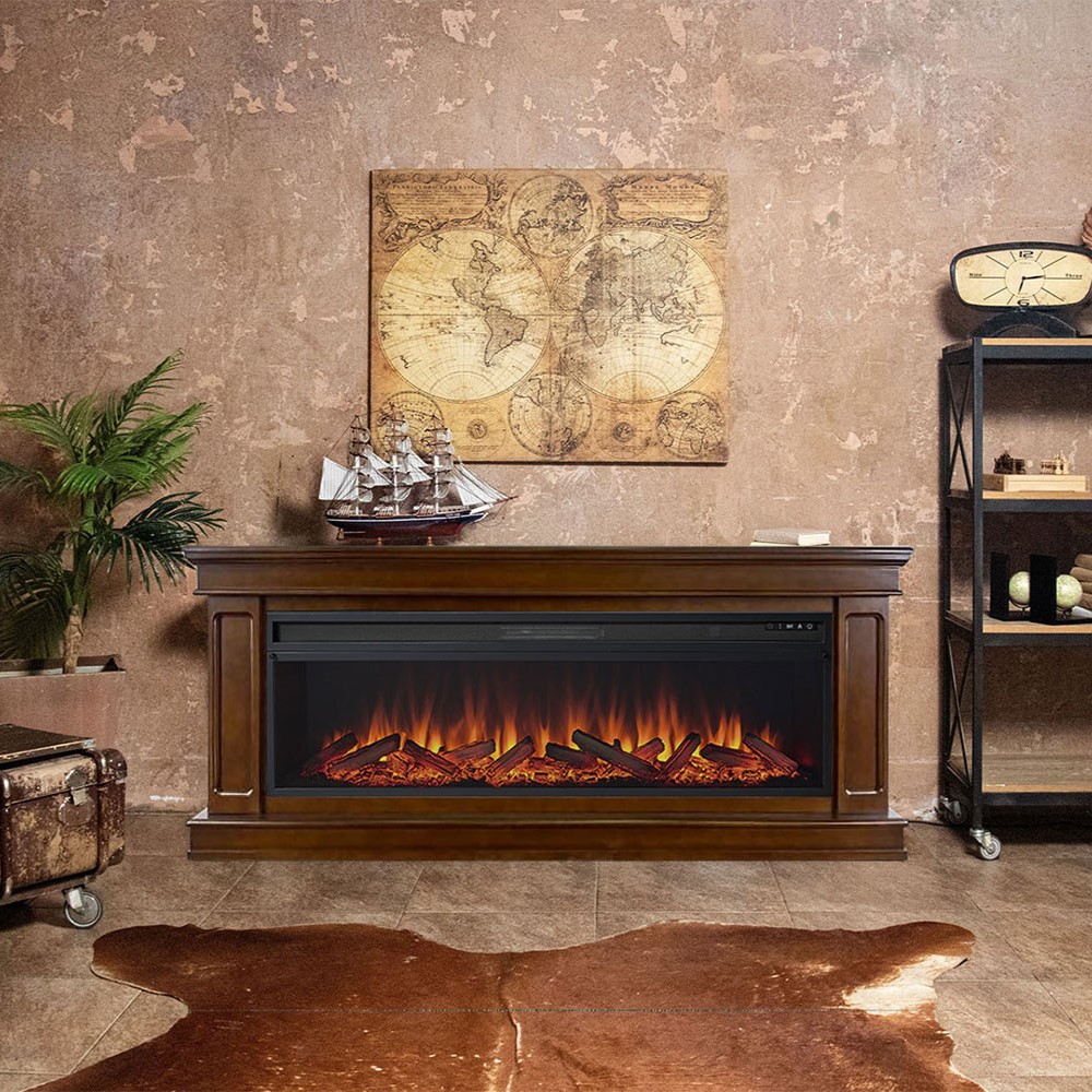 Имитация огня в очаге создается с помощью специальной подсветки, а ее эффект усиливается благодаря «тлеющим» поленьям и подсветке боковых стенок.