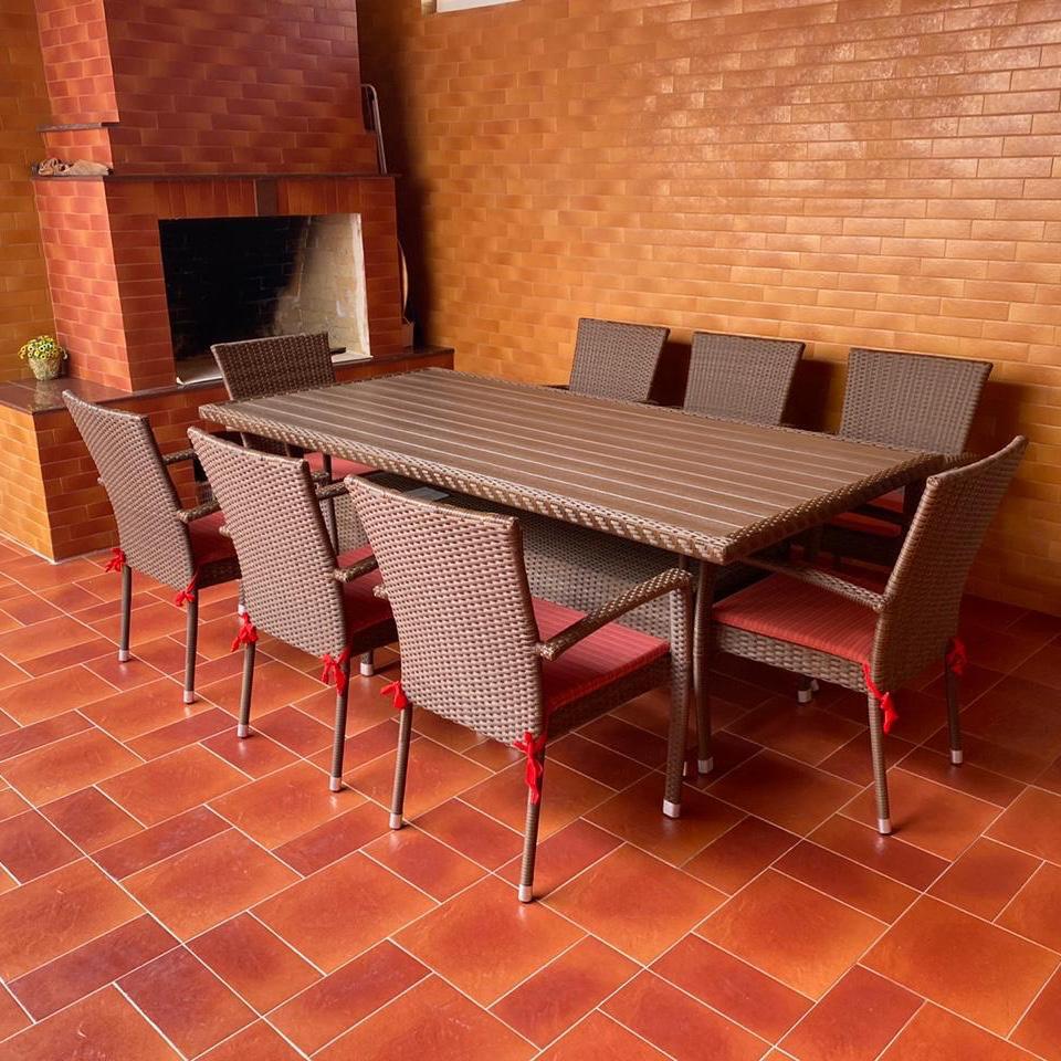 Зарема из Нальчика обратилась к нам, отправив фото интерьера своей летней кухни с пожеланием, чтобы менеджеры подобрали обеденную группу на 8-10 человек. Менеджер предложил жгут 30703 и подушки М09002. зарема одобрила этот вариант.